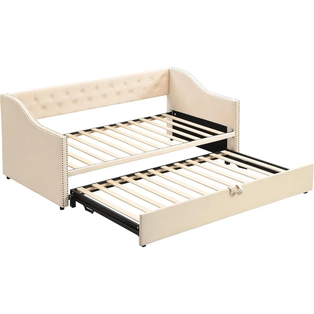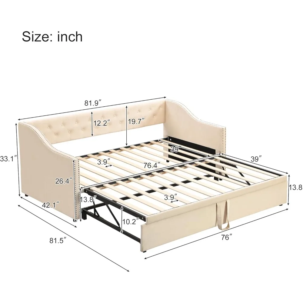 Merax Twin Size Daybed, Upholstered Twin Daybed Frame with Pop Up Trundle, No Box Spring Needed, Beige