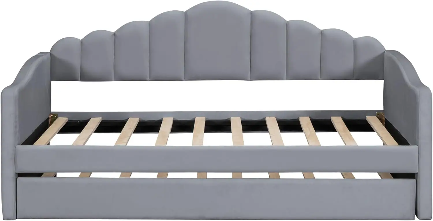 Bellemave Twin Size daybed with Trundle for Adults, Kids, Girls, Teens, daybeds with Trundle for Living Room, Velvet,Gray(Mattre