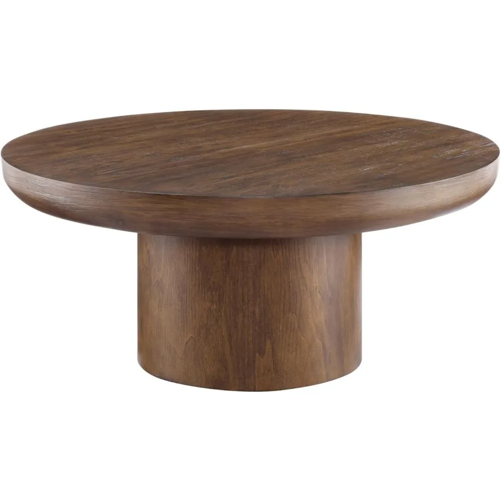 35.98 Inch Round Coffee Table, Wood Pedestal Accent Circle Coffee Table, Rounded Sofa Side Table for Living Room Office,Brown