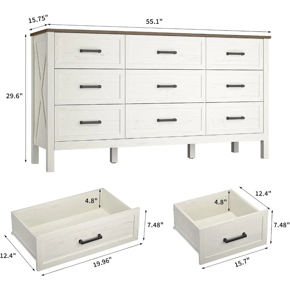 • Farmhouse 9-Drawer Dresser: The rustic charm of this dresser adds warmth and comfort to any bedroom, creating a cozy atmosphere. The natural grain of the wood brings a sense of authenticity and individuality to your living space, while the vintage design adds a touch of nostalgia and style. This dresser is perfect for adding a touch of farmhouse charm to any bedroom decor.