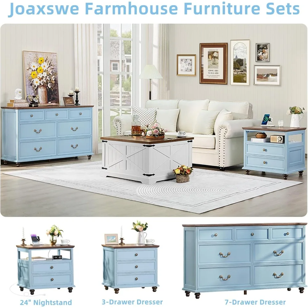 • 【Farmhouse Rustic Design】The farmhouse 7 drawers dresser features 4 sturdy decorative solid wood legs in the shape of vintage gourds,with geometric linearity design drawers and antique brass tone metal drawer knobs, blending vintage and modern sensibilities perfectly! This classic 7 drawers chest of drawers perfectly complements other furniture, adding a rich rustic feel to your home.